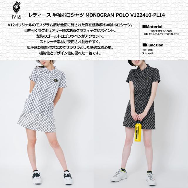 V12 ゴルフ レディース 半袖 ポロシャツ MONOGRAM POLO V122410-PL14 ヴィ・トゥエルヴ 【新品】TAAR ゴルフウェア 半そで おしゃれ モノグラム ポロ GOLF MAR2
