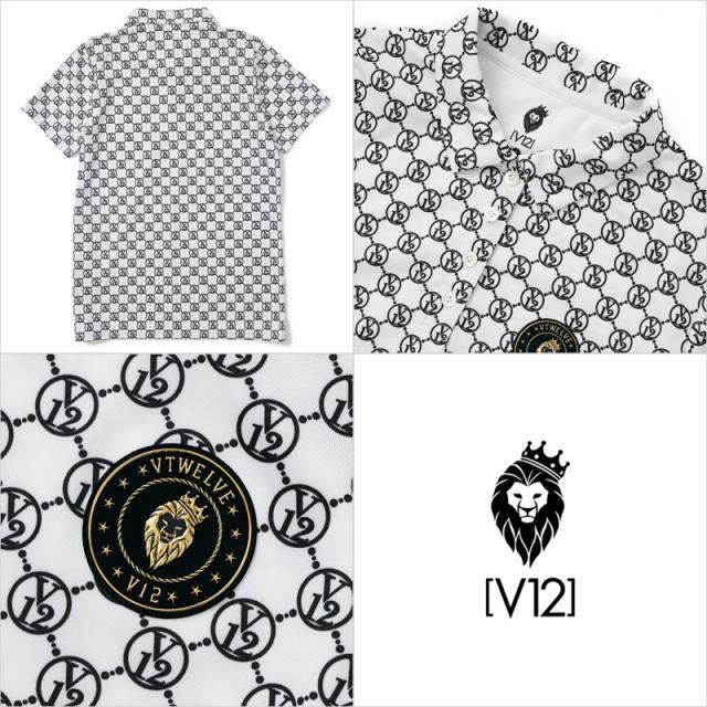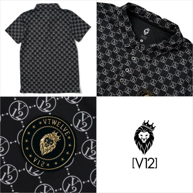 V12オリジナルのモノグラム柄が全面にプリントされた存在感抜群の半袖ポロシャツ。