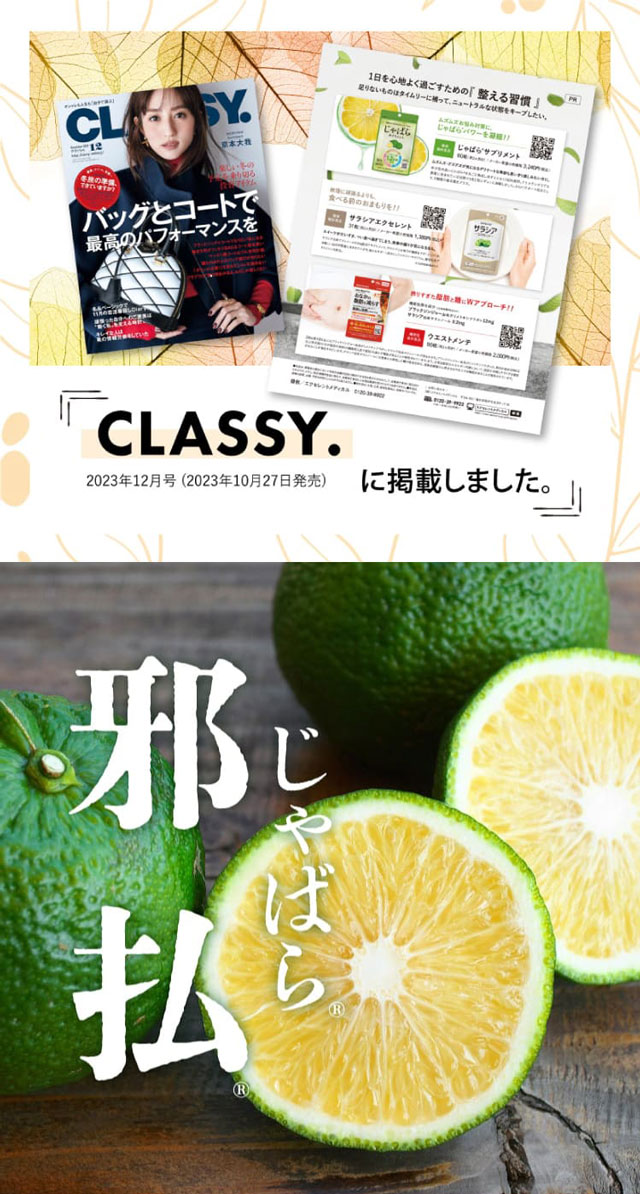 | 特徴 | 和歌山県北山村に自生していた、希少性が高い「幻の果実」じゃばら。もっともナリルチンが豊富に含まれている果皮を熟成させることで余すことなく100%使用した残留農薬検査すべて検出外の醗酵黒じゃばらに橋本院長こだわりの善玉菌をプラス。 昨今は、メディアだけでなく専門機関でもじゃばらを使用した研究が行われるなど、北山村のじゃばらは多方面で注目されています。 そんな健康サポートにおすすめの「じゃばらサプリメント」は男女問わずスッキリを後押し!! |