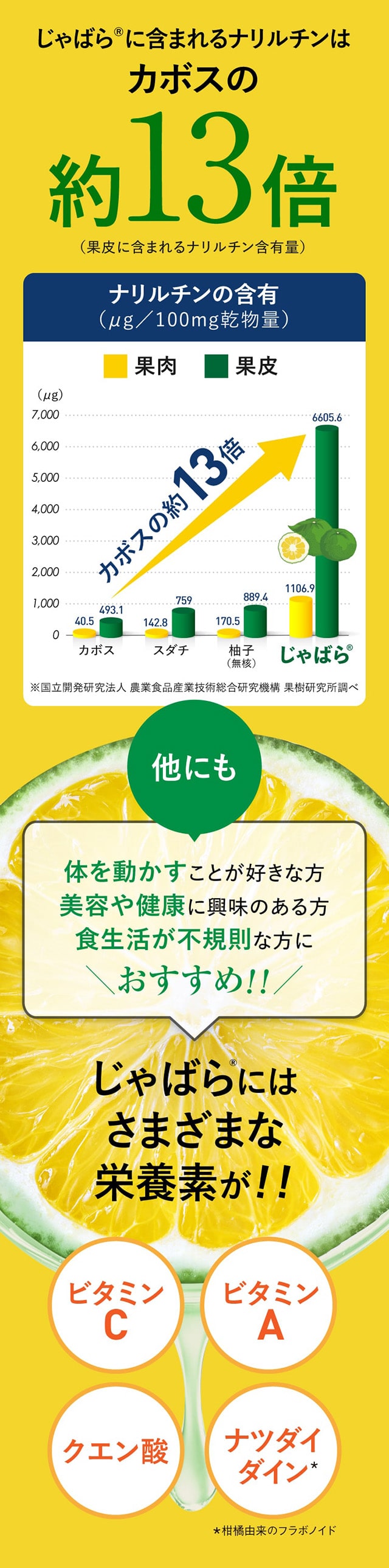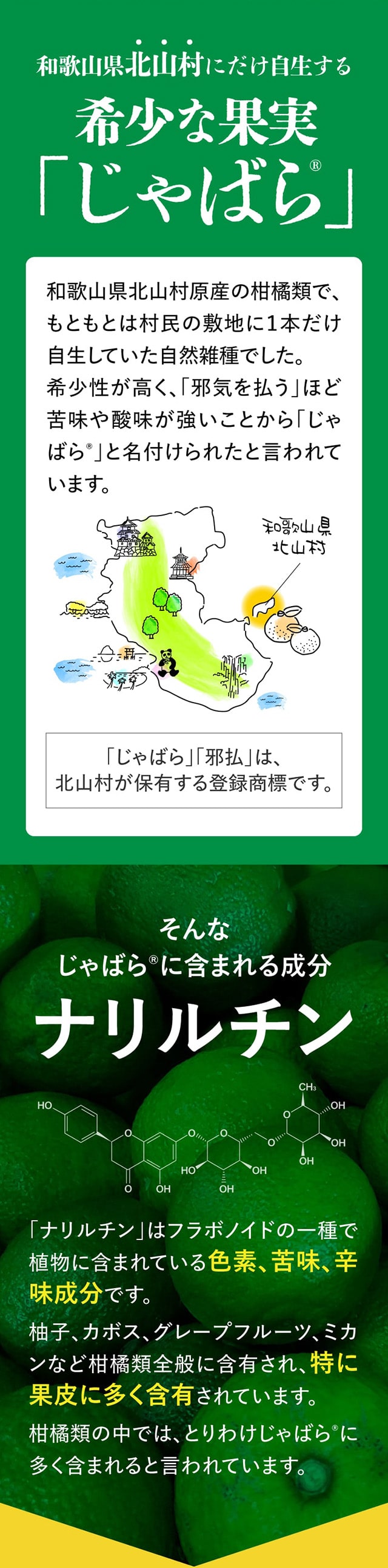 フラボノイドの一種「ナリルチン」を多く含む(特に果皮)じゃばらを余すことなく詰め込んだサプリ