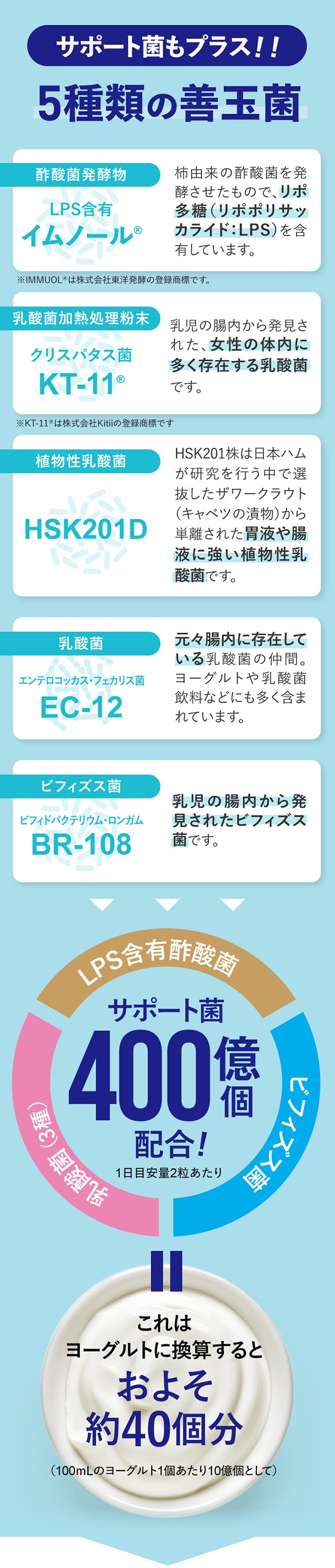 | 安全表記 | フリー:着色料・香料・甘味料・コーティング剤 |