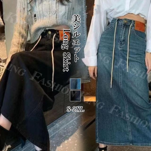 デニムスカート レディース 秋冬 春新作 デニムロングスカート ロング丈 タイトスカート フレアー スリット ハイウエスト 無地 マキシ丈 OL 通勤 ボトムス きれいめ お洒落 カジュアル シンプル 入学式 入園式