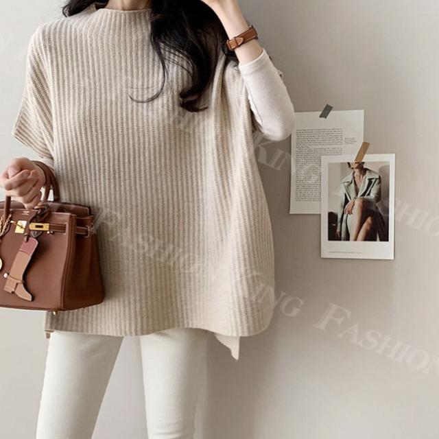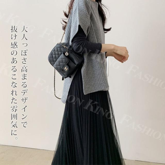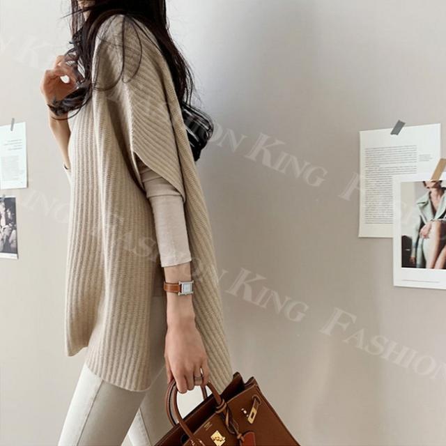 キーワード:ニットベスト ドロップショルダー レディース トップス リブニット スウェット ボートネック レイヤード 重ね着 前後差 サイドスリット コーデ 春 秋冬 カジュアル 体型カバー
