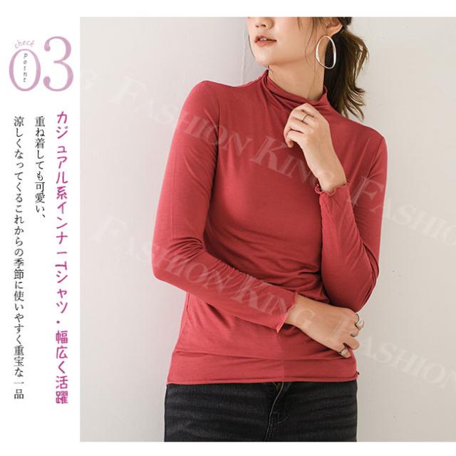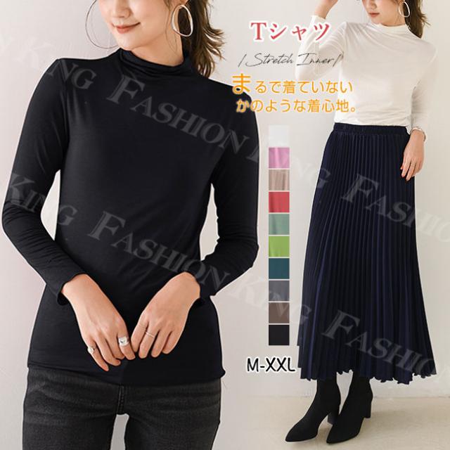 Tシャツ 長袖 秋冬 春新作 インナーTシャツ レディース 無地 ハイネック スリム ストレッチ カットソー トップス 激安 肌着 アンダーウェア シンプル カジュアル おしゃれ 重ね着 ベーシックtシャツ ホワイトデー 卒業式