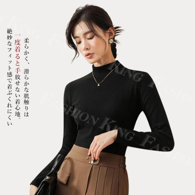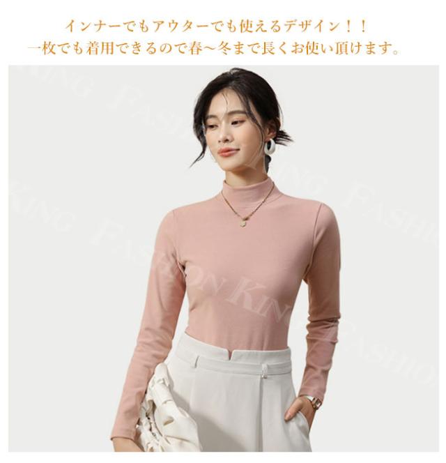 長袖 tシャツ カットソー レディース 秋冬 春新作 インナー トップス ハイネック 無地 ロンT ロング スーツ シンプル ナチュラル 肌着 伸縮素材 着心地 防寒インナー 重ね着 フィット レイヤード ルームウェア 部屋着 普段着 入学式 入園式