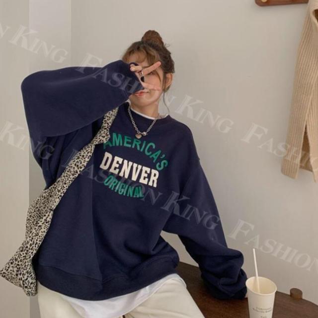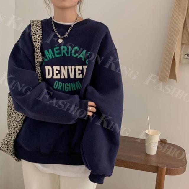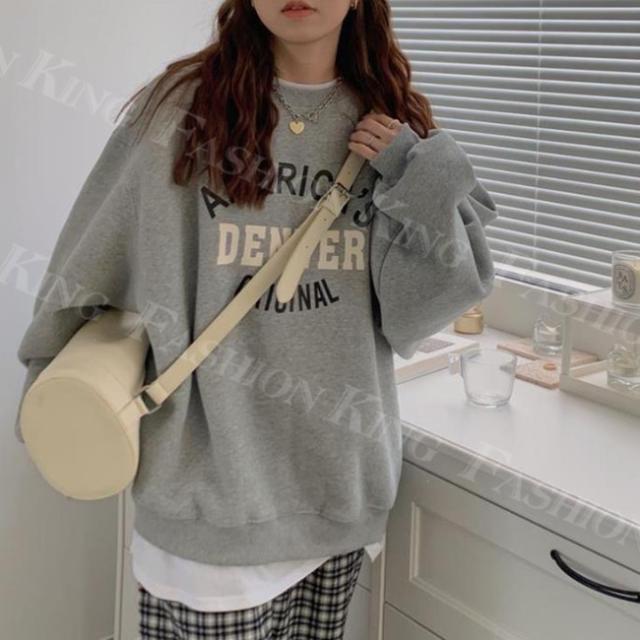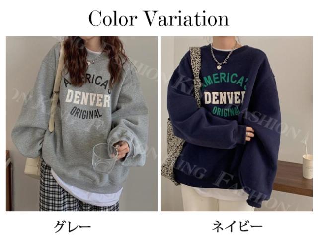 トレーナー トップス レディース 秋冬 春新作 プルオーバー オーバーサイズ ロゴ付き ゆったり 重ね着風 スウェット クルーネック 大きいサイズ 体型カバー カットソー パーカー ホワイトデー 卒業式
