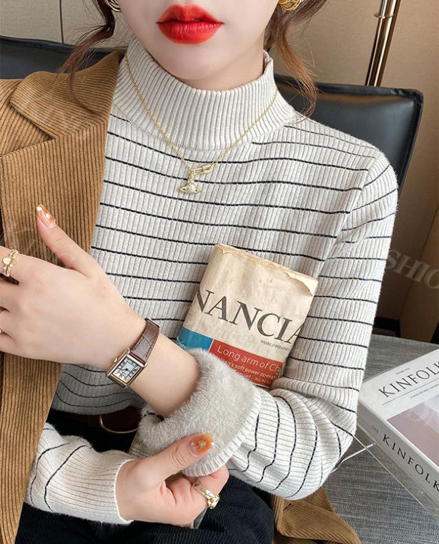 【二点目半額】ハイネックTシャツ 長袖 レディース 秋冬 春新作 ボーダーTシャツ トップス カットソー インナー クルーネック 無地 ロンT ロング スーツ 長袖カットソー シンプル ナチュラル 肌着 モーダル 伸縮素材 着心地 入学式 入園式
