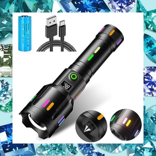 【2024最新液晶画面デジタル表示】独特な夜光懐中電灯 led 強力 軍用 最強 1000000ルーメン超高輝度 明るい ハンディライト USB充電式 le