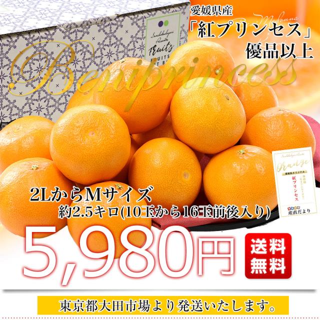 愛媛県産「紅プリンセス」優品以上 約2.5キロ2LからMサイズ(10玉から16玉前後入り) 送料無料 柑橘 紅まどんな 甘平 市場発送【発送時期:カート内に記載しております】