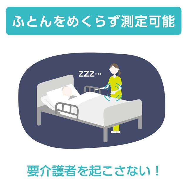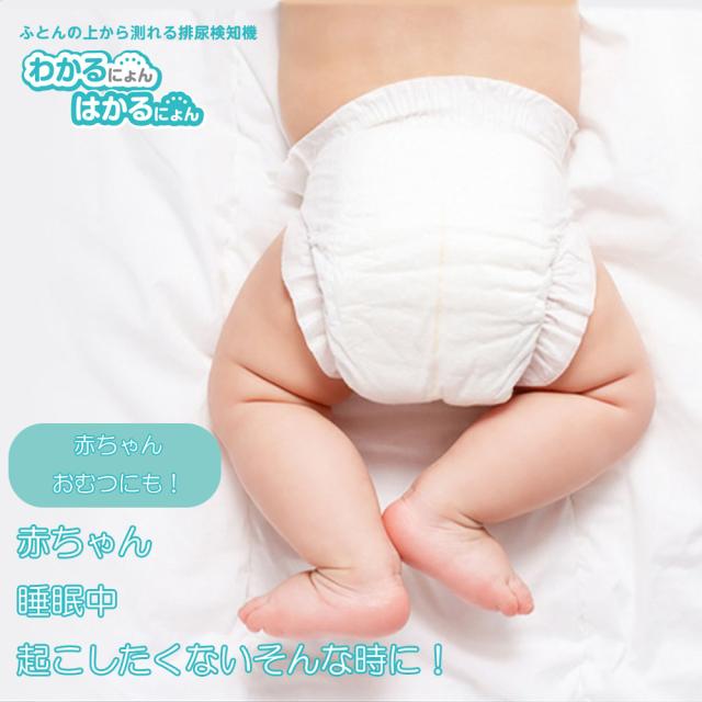 オムツセンサーの「わかるにょん」、「はかるにょん」は、服を着たまま、布団の上からオムツ内の濡れ具合を10段階で検知します!