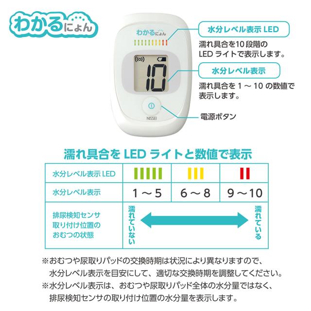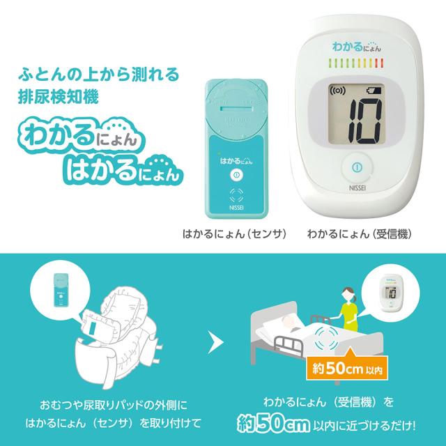 日本精密測器 NISSEI 排尿検知機 排尿検知センサ セット わかるにょん はかるにょん おむつや尿取りパッドの外側にセンサを取り付けて受信機を約50cm以内に近づけるだけ!介護 育児 便利アイテム 赤ちゃんおむつ 防水仕様