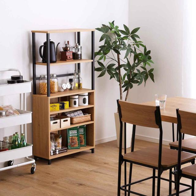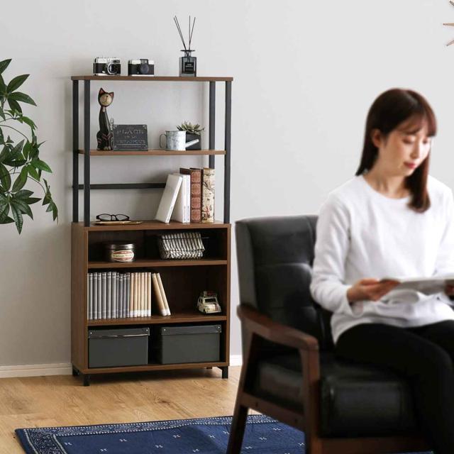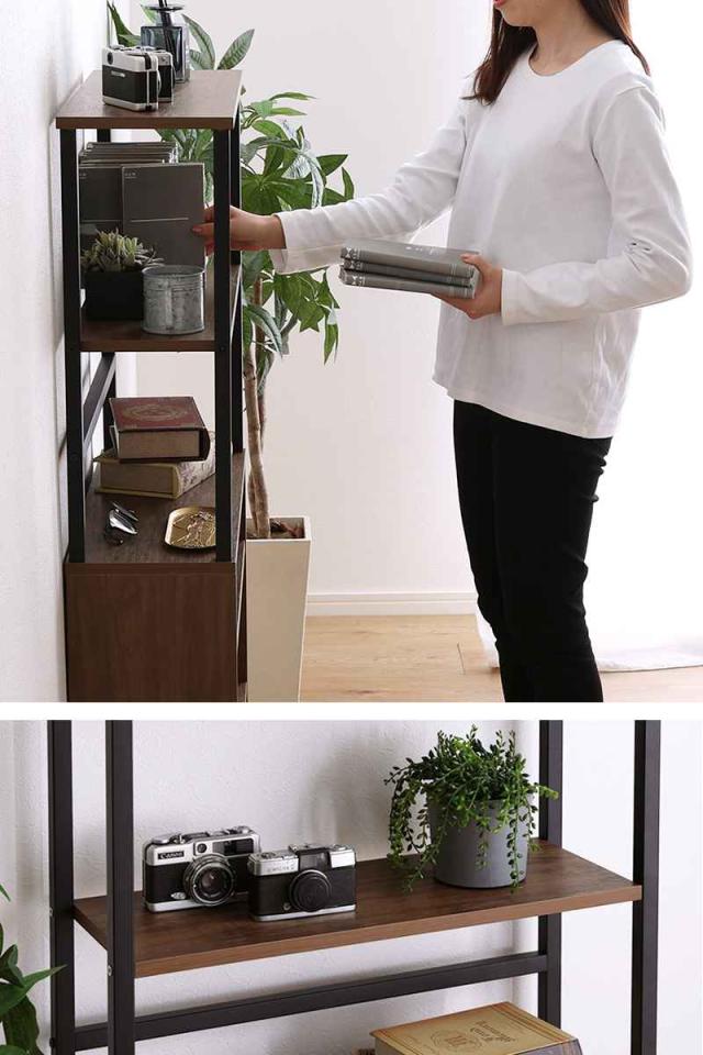 キャビネット 幅60cm 高さ120cm ヴィンテージ調 スリム ( オープンラック 棚 ラック 収納 家具 ディスプレイ 木目調 リビング収納 可動棚 奥行スリム 背面化粧 拭ける シャビーオーク ウォールナット )