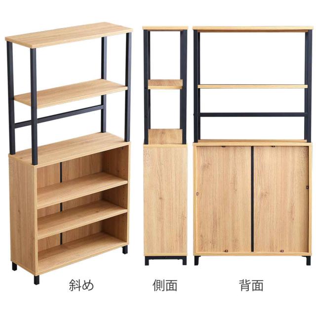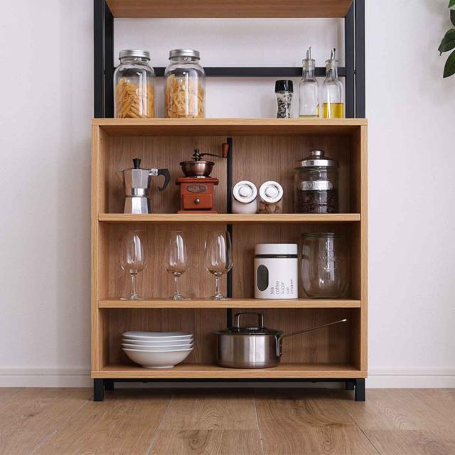 下段はオープンキャビネットなので、物を直ぐに取り出せます。また背板があるので奥に物を置いても、後ろ側から落ちてしまう心配がありません。