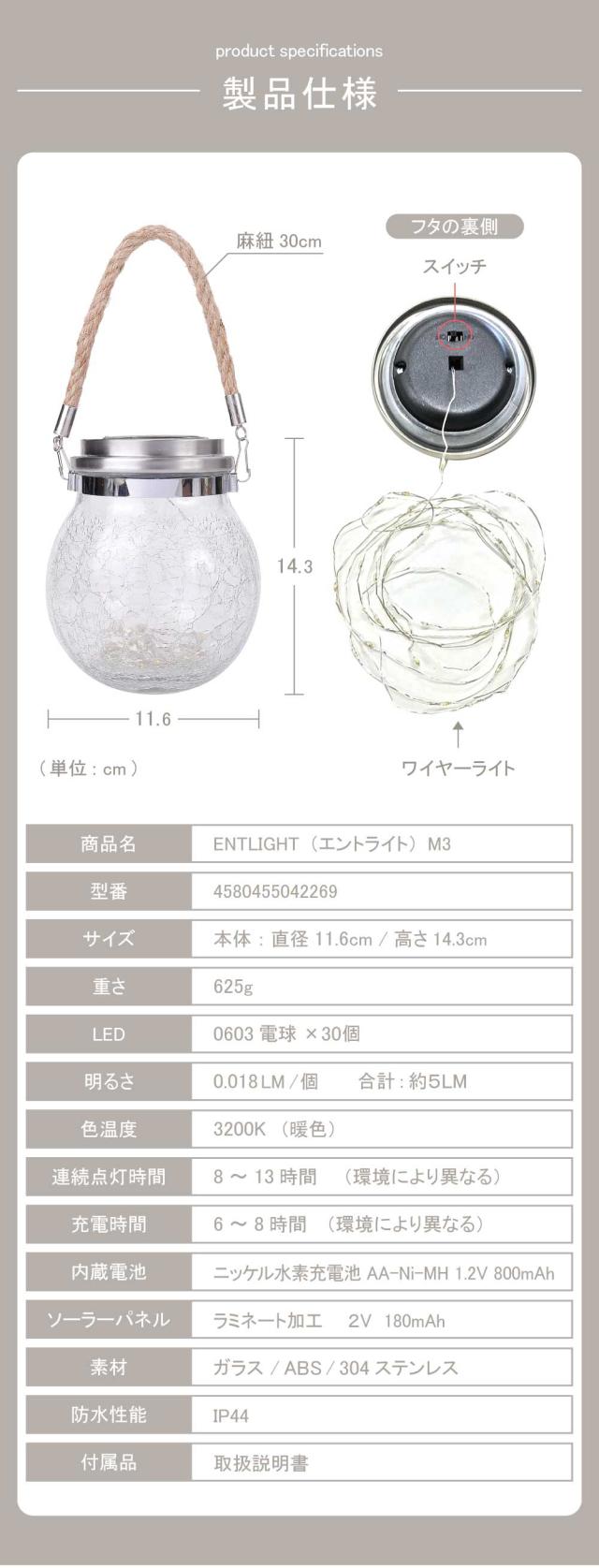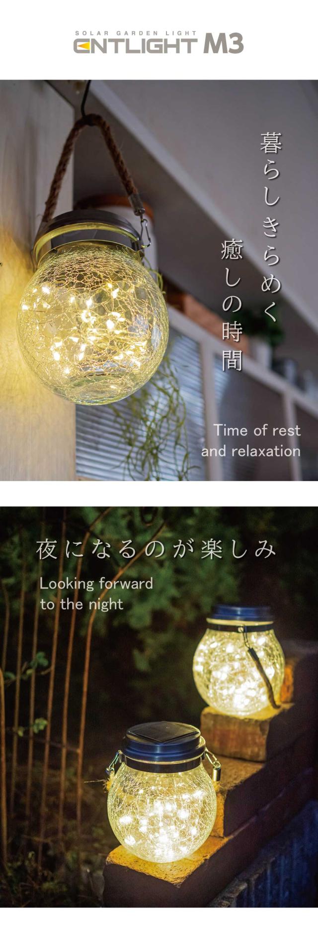 累計販売41万個突破「ENTLIGHT」最新作! ソーラーライト ガーデンライト LEDソーラーライト LEDガーデンライト ガラス 屋外 防水 センサー 電球色 おしゃれ 庭 ライトアップ 吊り下げ アンティーク かわいい エクステリア ガラス球 M3