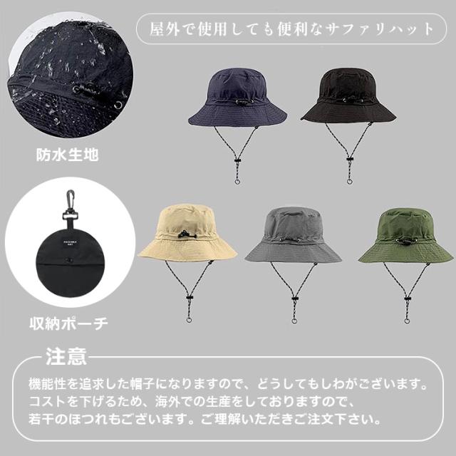 帽子 メンズ 夏用 ハット サファリハット コンパクト つば広 あご紐 折りたたみ 収納ポーチ 日よけ 日除け 釣り ゴルフ 農作業 キャンプ 登山 おしゃれ シンプル UVカット 紫外線 熱中症対策 アウトドア 春 夏 秋 冬 男女兼用