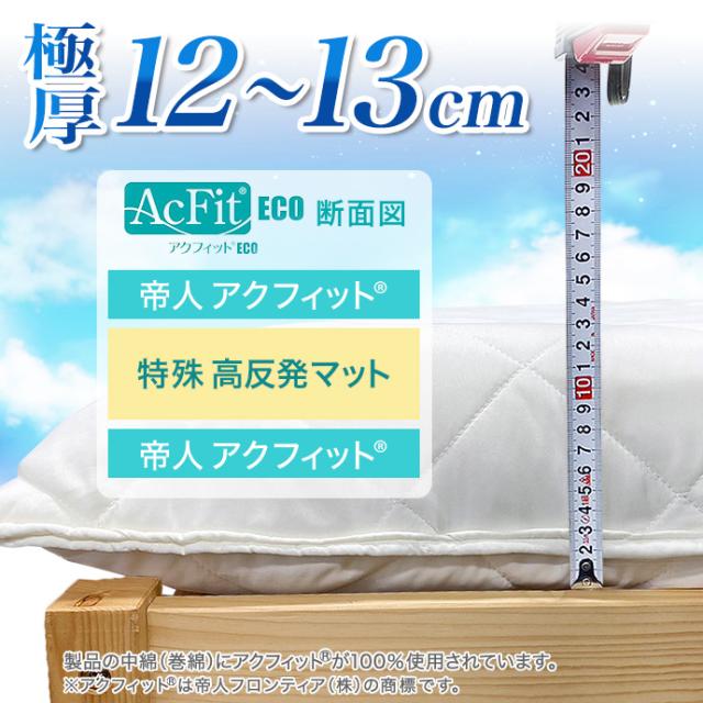 日本製 雲の上の心地よさ 敷布団 シングル 極厚 約12〜13cm 高反発 FT 帝人 アクフィット(R) テイジン フロンティア 機能綿使用 敷き布団 制菌 抗菌 防臭 防ダニ 吸汗 速乾 極厚 高反発 固綿 マットレス不要 プレミアムな寝心地 国産