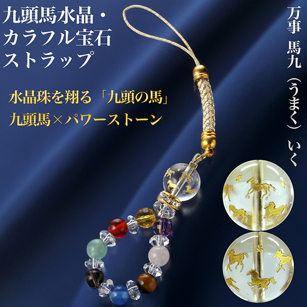 九頭馬カラフル宝石ストラップ‐ST_598 九頭馬 水晶 ストラップ 商売 出世 縁談 蓄財 勝負事 健康 夫婦仲 農漁業 受験 厄除け 値付 スマートフォン スマホ