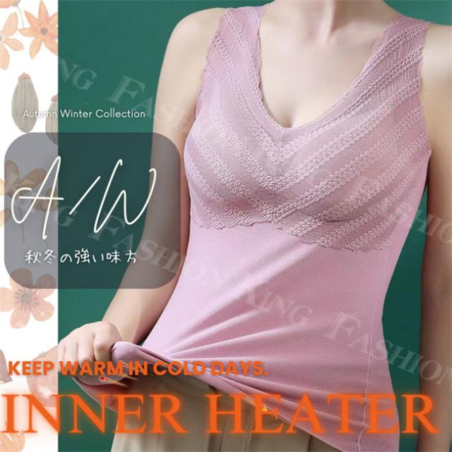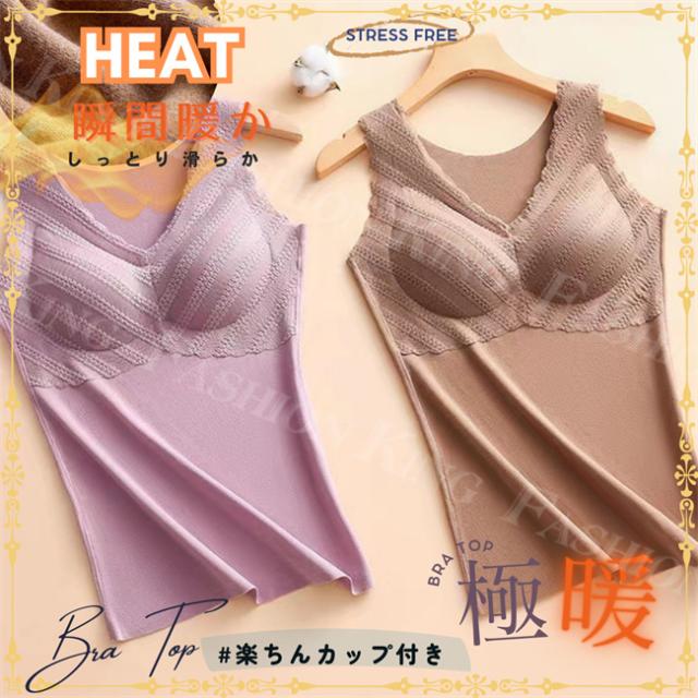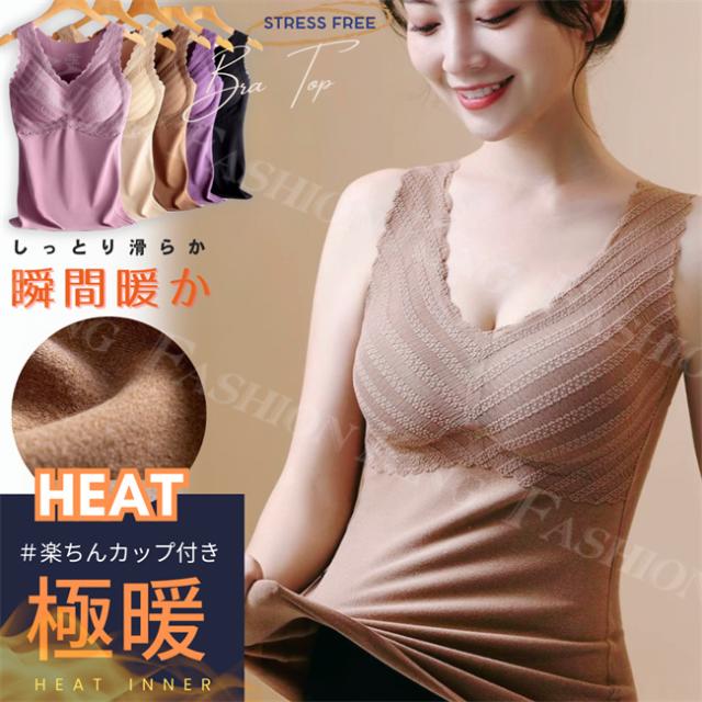 <2点まとめ買いで送料無料>タンクトップ 裏起毛 2way タンクトップ Vネック インナー レディース 秋冬 秋新作 レース ノースリーブ 補正&谷間 美胸 厚手 極暖 裏起毛 カップ付き あったかキャミ キャミソール バレンタインデー