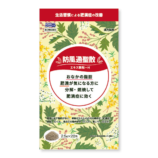 本草防風通聖散エキス顆粒-Hは漢方処方「防風通聖散」を煎じて服用する不便をなくし、簡便に服用出来るようにエキス顆粒(分包)とした製品です。