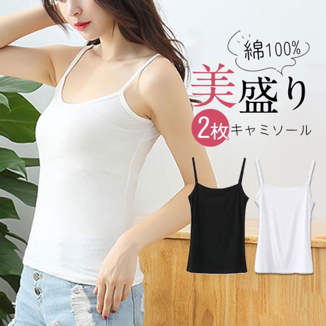 キャミソール インナー 2枚セット キャミ タンクトップ 重ね着 肌着 トップス 下着 部屋着 ルームウェア 盛れる 美盛り 保湿