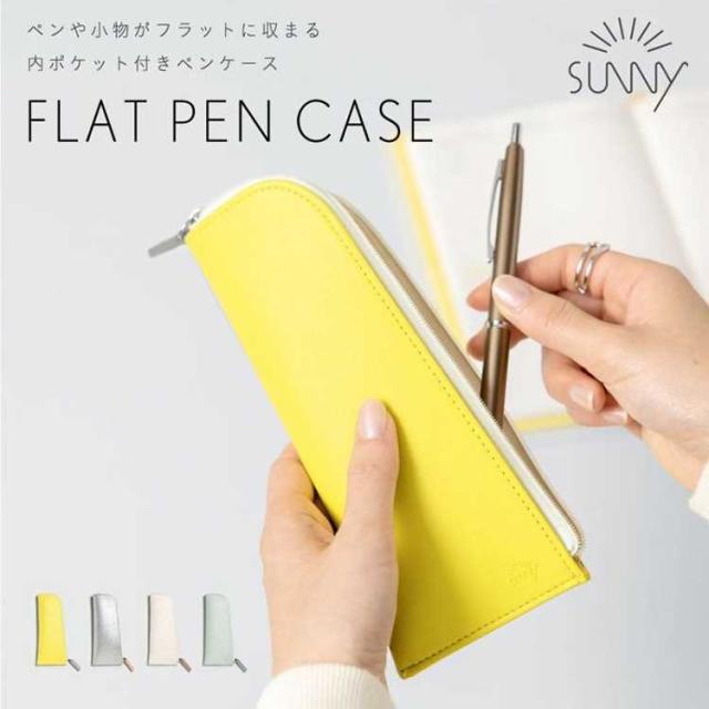 ペンケース SUNNY サニー おしゃれ スリム かわいい シンプル コンパクト 小さい 平ら 小物入れ 筆箱 女性 大学生 大人 女子 レディース ファスナー ペン入れ ペンポーチ 筆記用具 文房具 高校生 イエロー シルバー ベージュ グリーン 通勤 通学 持ち運び 無地 軽量 薄型