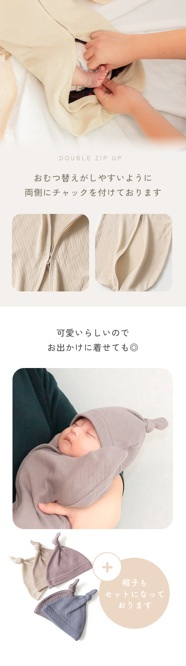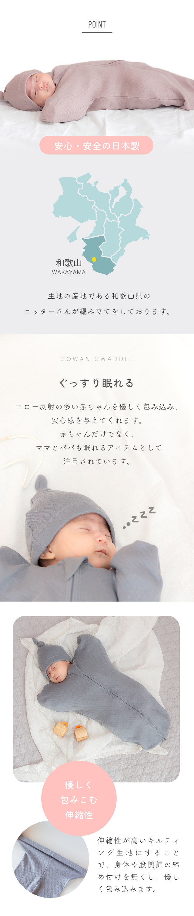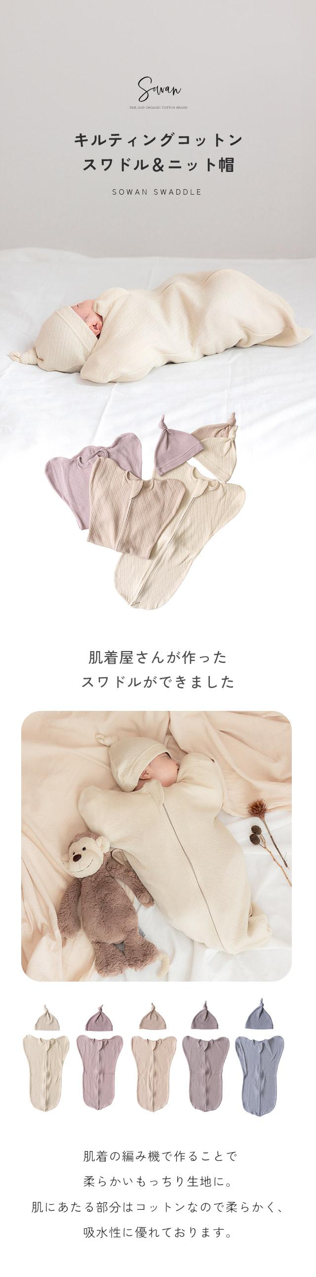 【ニット帽付き】キルティング コットン スワドル すわどる すわドル ベビー 赤ちゃん 春夏 薄手 綿100 オールシーズン おしゃれ スリーパー 0〜3 ヶ月 新生児から使える 出産祝い 日本製 寝かしつけ モロー反射 ガーゼおくるみ ギフト 男の子 女の子