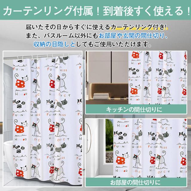 シャワーカーテン 防カビ おしゃれ 北欧 180*200CM 防水 撥水 シンプル バス カーテン 浴室 脱衣所 バスルーム お風呂 仕切り カーテンリング付属 敬老の日プレゼント
