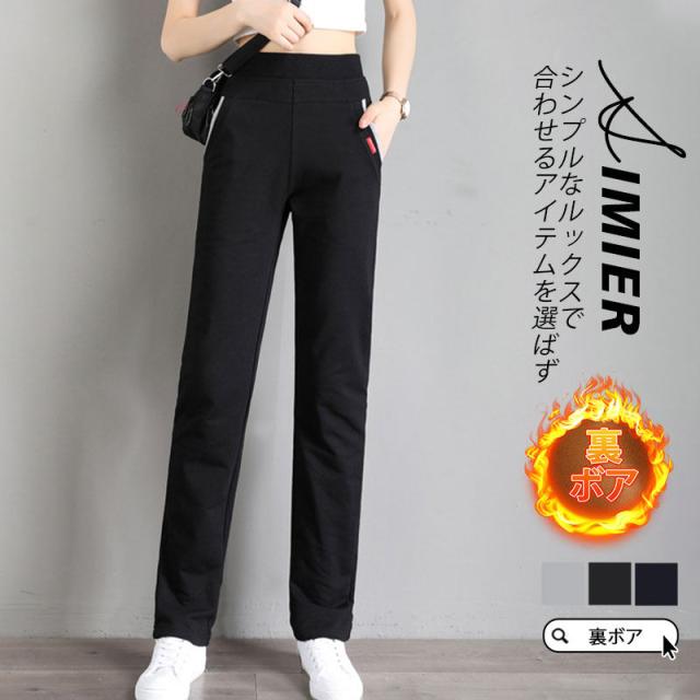【水曜日まで!10%クーポン配布中】 チノパン レディース ストレートパンツ カジュアル 秋冬 新作 裏ボア 裏起毛 厚手 ロング丈 細身 暖かい 旅行 通勤 通学 オフィス 着痩せ 無地 ボトムス