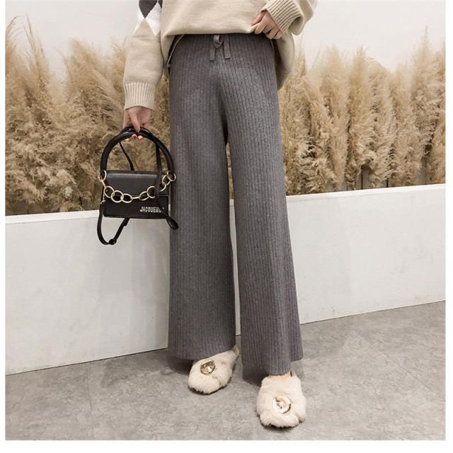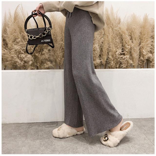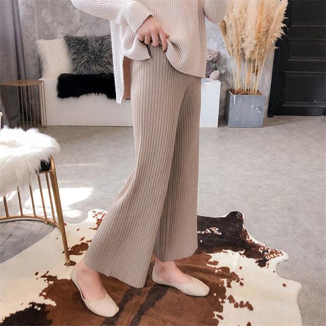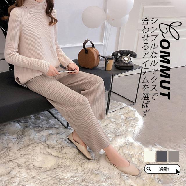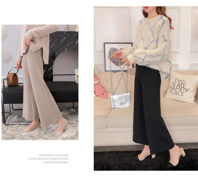 【水曜日まで!10%クーポン配布中】 ニット ワイドパンツ チノパン レディース 秋服 新作 ハイウエスト ロング丈 細身 カジュアル 旅行 通勤 通学 オフィス 着痩せ 無地 ボトムス スポーツ