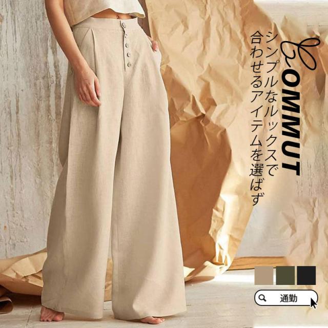 【水曜日まで!10%クーポン配布中】 チノパン レディース ワイドパンツ リネン ゆったり カジュアル 秋服 春秋冬 新作 ハイウエスト ロング丈 細身 旅行 通勤 オフィス 着痩せ 無地 ボトムス