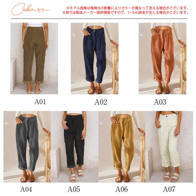 【水曜日まで!10%クーポン配布中】 チノパン レディース テーパードパンツ コーデュロイ 秋冬 新作 ハイウエスト ロング丈 細身 暖かい 旅行 通勤 通学 オフィス 着痩せ 無地 ボトムス