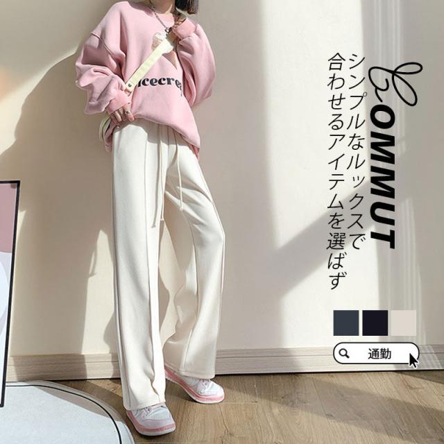 【水曜日まで!10%クーポン配布中】 新作 チノパン レディース ワイドパンツ ルームウェア カジュアル 秋冬 ハイウエスト ロング丈 細身 旅行 通勤 通学 オフィス 着痩せ 無地 ボトムス