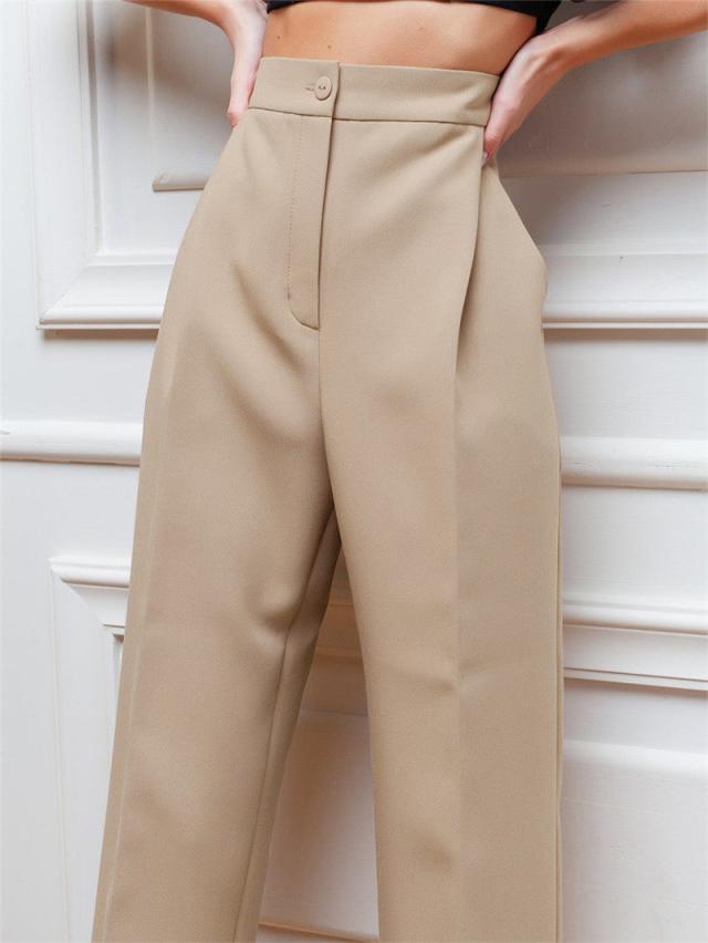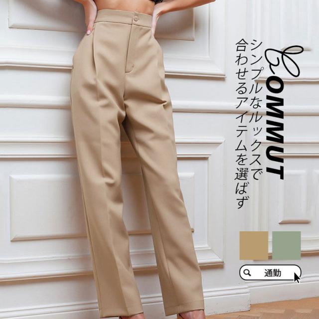【水曜日まで!10%クーポン配布中】 ストレートパンツ チノパン レディース ビジネス 春秋 新作 ハイウエスト カジュアル ロング丈 細身 旅行 通勤 通学 オフィス 着痩せ 無地 ボトムス