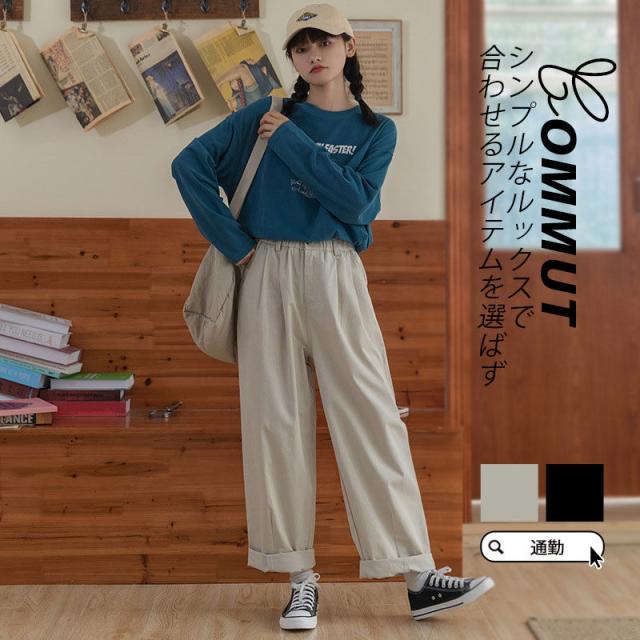 【水曜日まで!10%クーポン配布中】 新作 チノパン ワイドパンツ レディース カジュアル ゆったり 秋服 ハイウエスト ロング丈 細身 旅行 通勤 通学 オフィス 着痩せ 無地 ボトムス