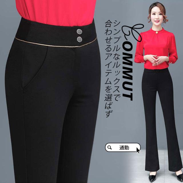 【水曜日まで!10%クーポン配布中】 チノパン レディース ブーツカット 春秋 新作 ハイウエスト ロング丈 細身 旅行 通勤 オフィス 着痩せ 無地 ボトムス スポーツ 大きいサイズ