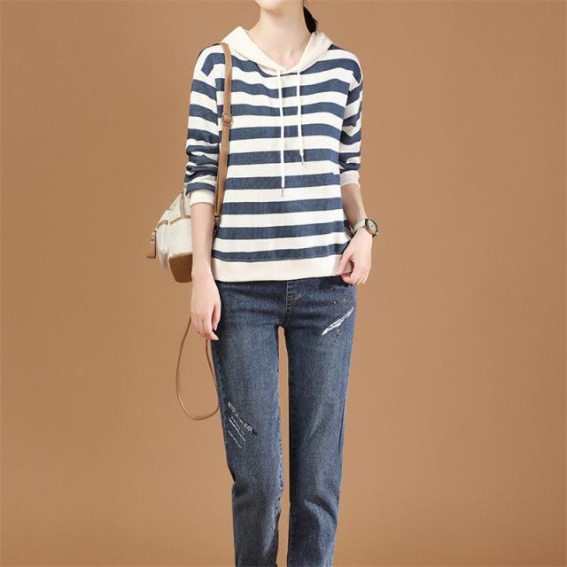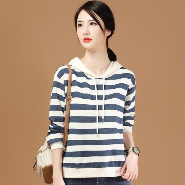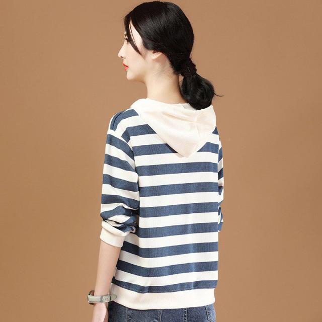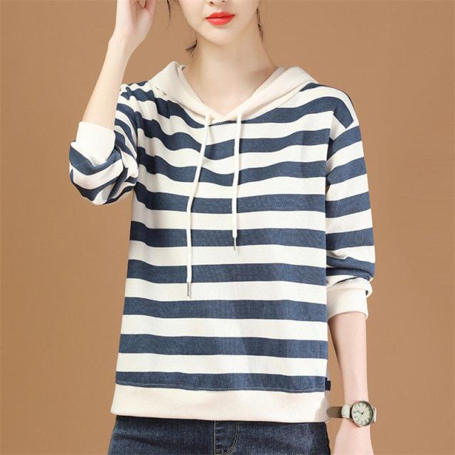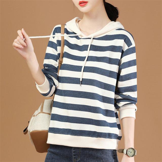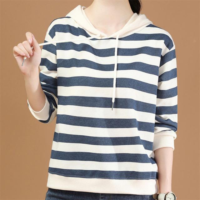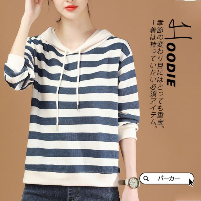 【水曜日まで!10%クーポン配布中】 パーカー レディース 秋コーデ プルオーバー フード付き ストライプ スウェット トレーナー 細身 着痩せ 秋服 カジュアル アウター カットソー 春秋 新作