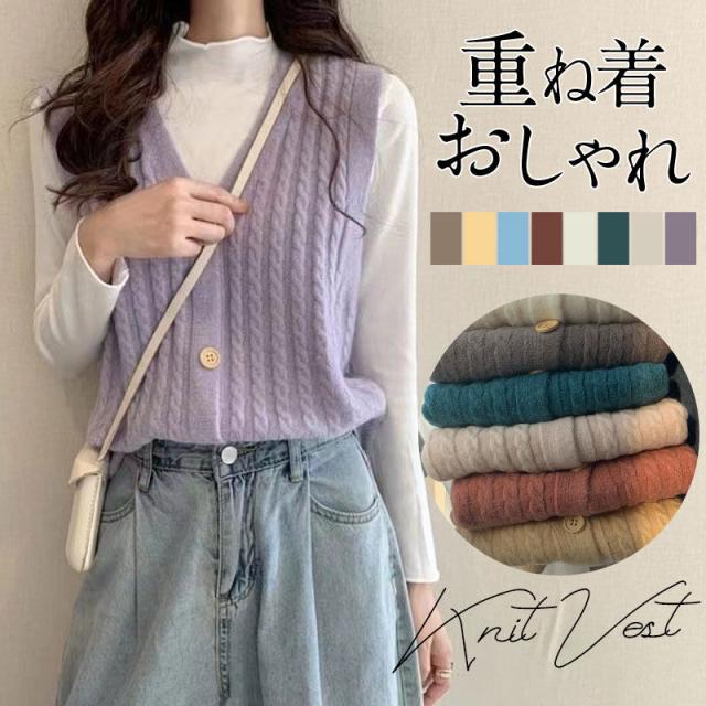 【水曜日まで!10%クーポン配布中】 限定価格 ニットベスト レディース Vネック 開襟 秋冬 チョッキ 重ね着 上着 着痩せ ノースリーブ レイヤード カジュアル 秋コーデ ゆったり トップス 細身