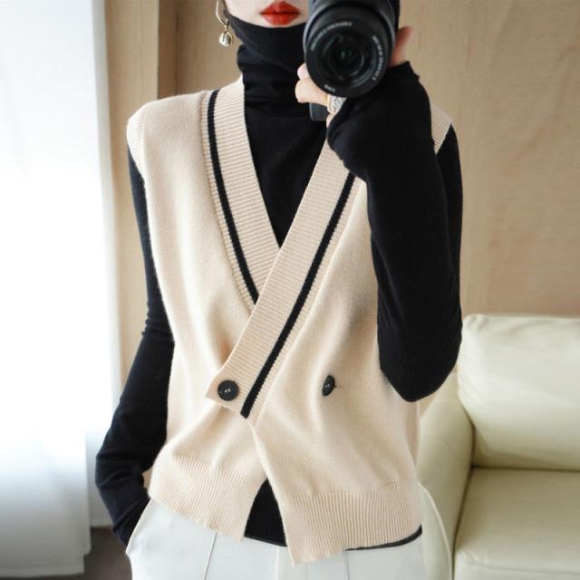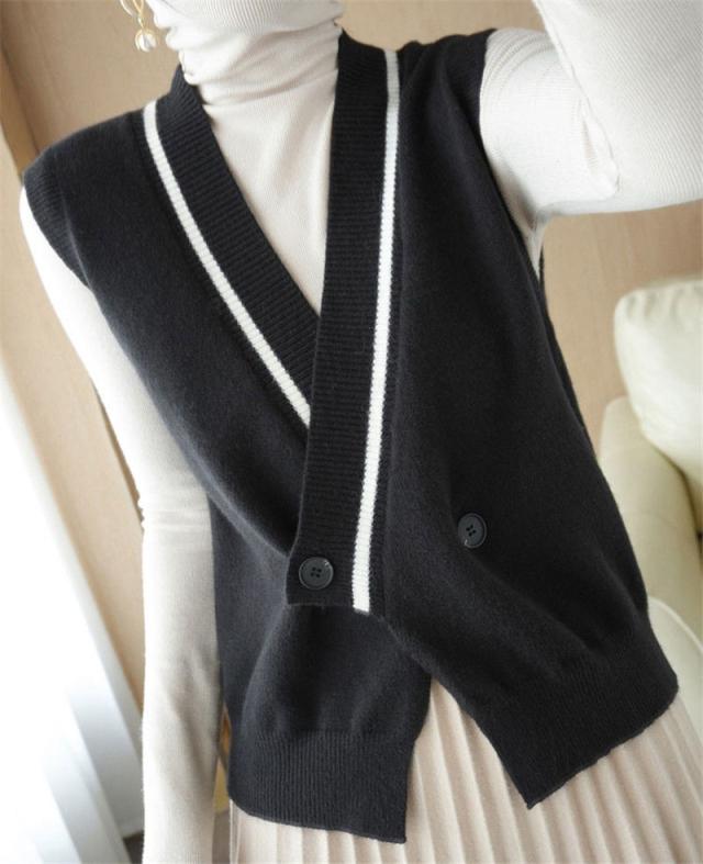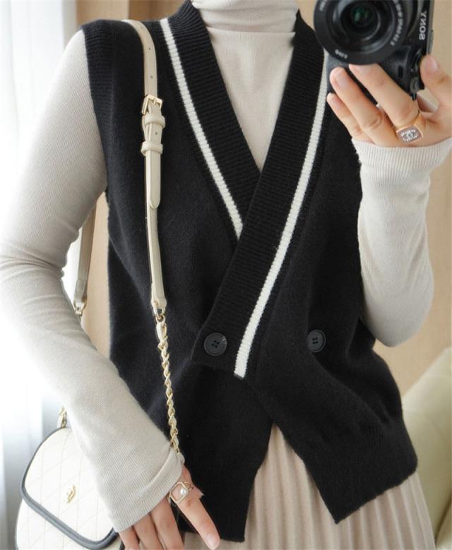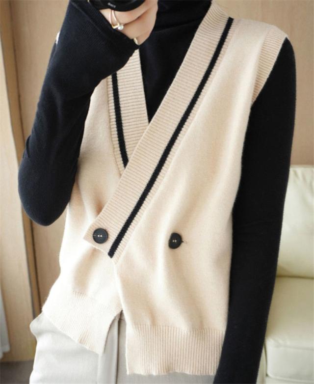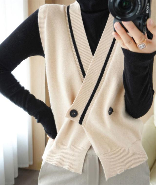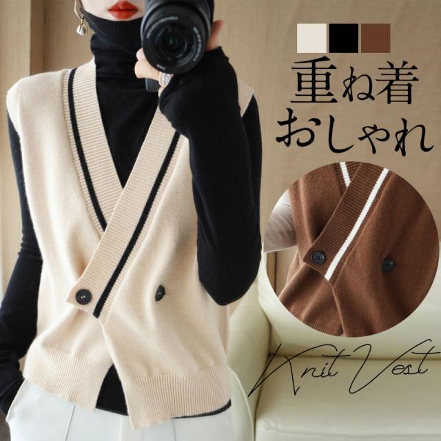【水曜日まで!10%クーポン配布中】 ニットベスト 開襟 レディース Vネック 秋服 フォマール 秋冬 チョッキ 重ね着 着痩せ 上着 ノースリーブ レイヤード カジュアル 秋コーデ 無地 細身
