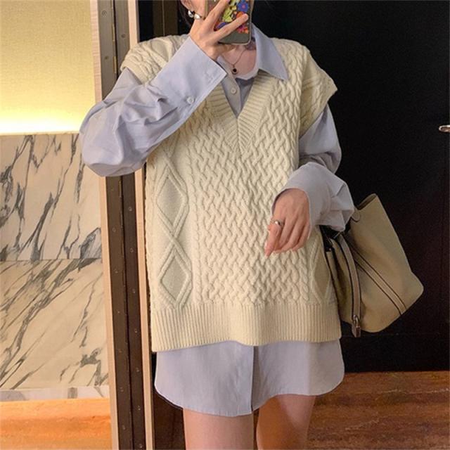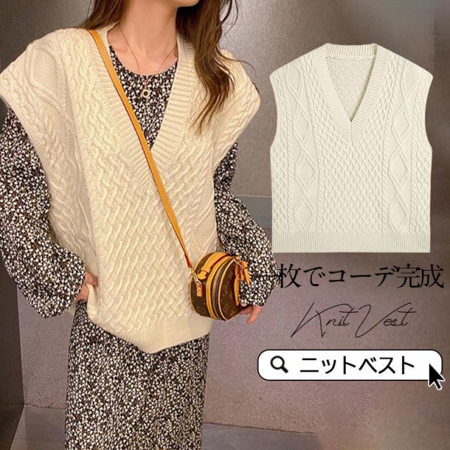 【水曜日まで!10%クーポン配布中】 ニットベスト Vネック レディース プルオーバー 秋冬 チョッキ 重ね着 秋服 着痩せ 上着 ノースリーブ レイヤード カジュアル 秋コーデ ゆったり
