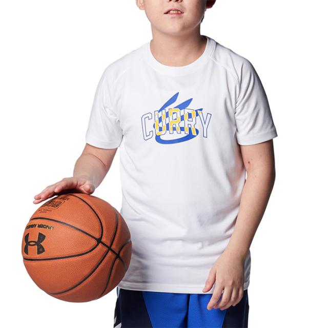 アンダーアーマー キッズ Tシャツ 半袖 130-160cm 子供服 アンダーアーマー UNDERARMOUR カリー テック バスケットボール ミニバス スポーツウェア 吸汗速乾 抗菌防臭 子ども トレーニング 練習着 ステフィン・カリー プリントT トップス ブランド アパレル/1384727