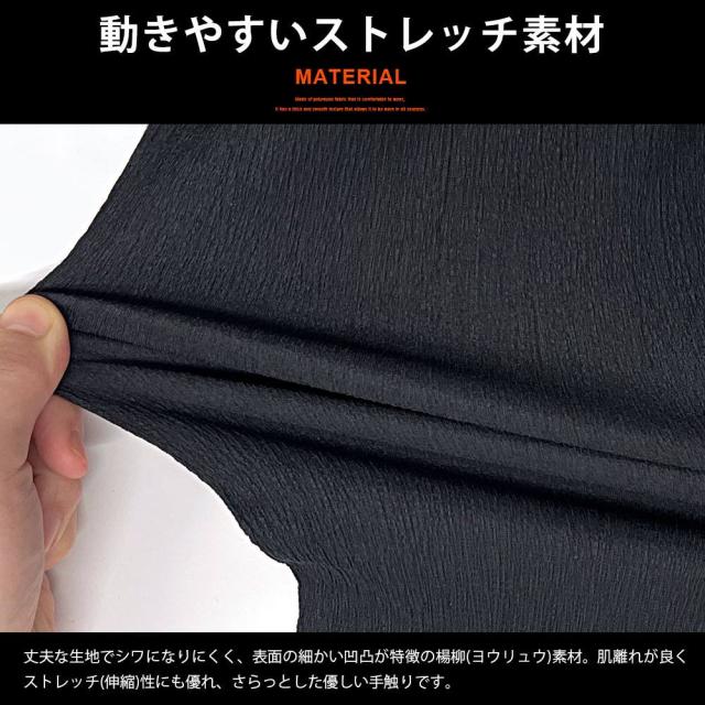 丈夫な生地でシワになりにくく、生地に凸凹があり、肌に密着するということがなく、サラッとした着心地です。