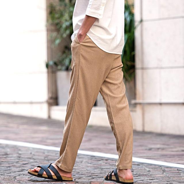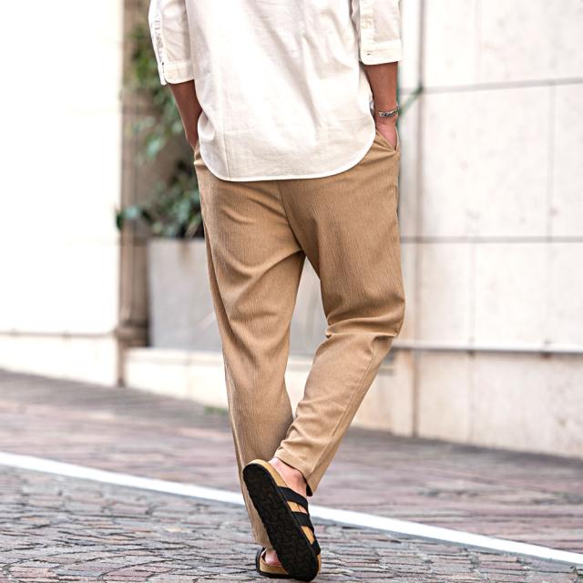 パンツ メンズ ブランド おしゃれ 大人 楊柳パンツ テーパードパンツ 楊柳 シンプル 無地 ベージュ ブラック ホワイト リラックス 清涼 涼しい イージーパンツ 父の日 プレゼント CavariA ユニセックス 男性 男 服 春 夏 ファッション 即日発送 [CANG24-22]