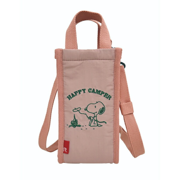 スヌーピー ボトルショルダー(トートバッグ型) HAPPYCAMPER ピンク 簡易保冷 洗濯OK SNOOPY