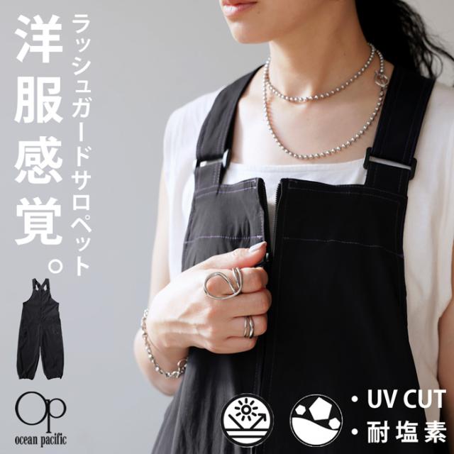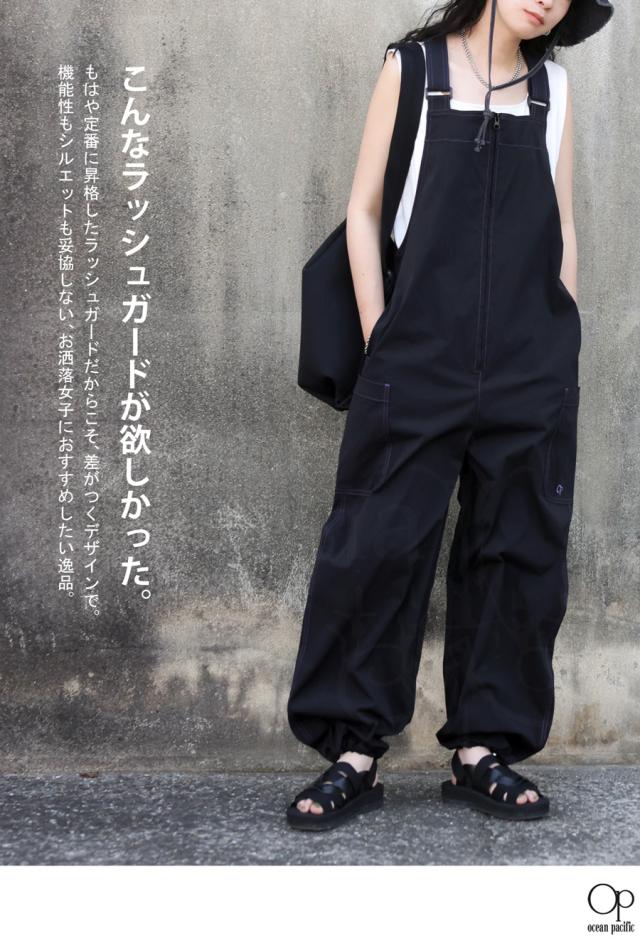 水辺のレジャーでも人と違ったスタイリングを楽しめるラッシュガードサロペット。