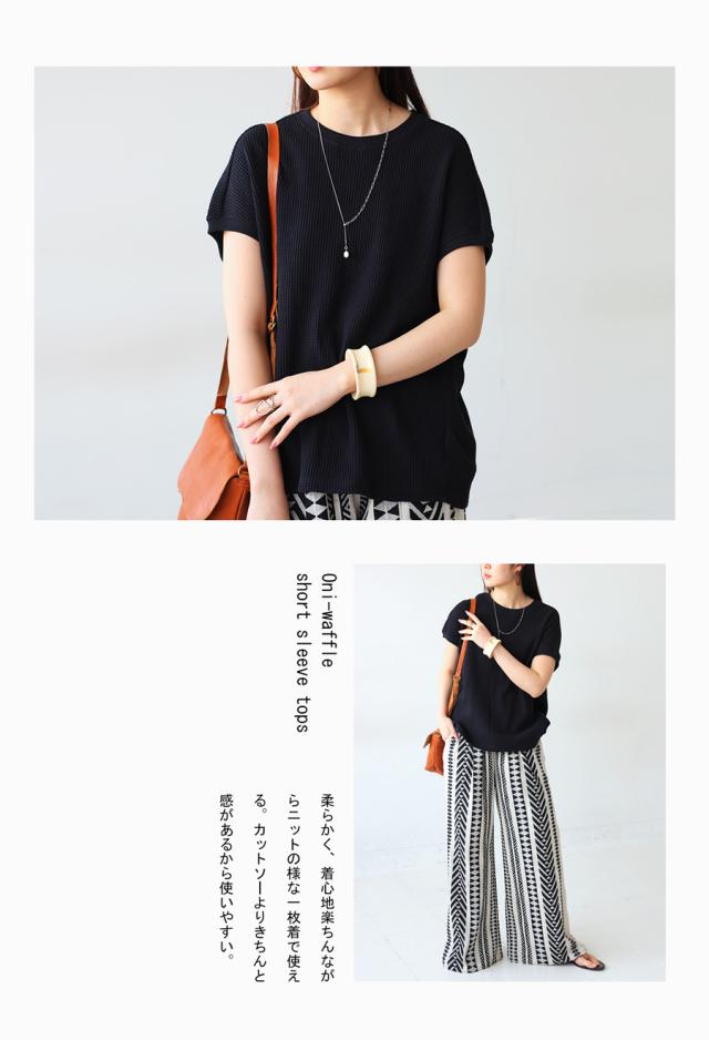 鬼ワッフルトップス Tシャツ レディース トップス 半袖 無地・(500)メール便可
