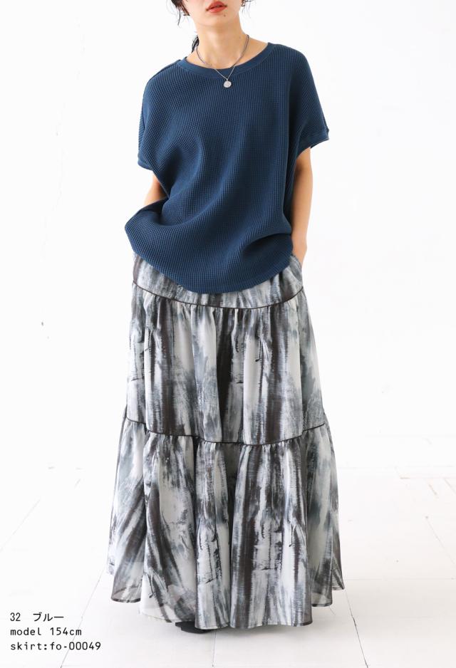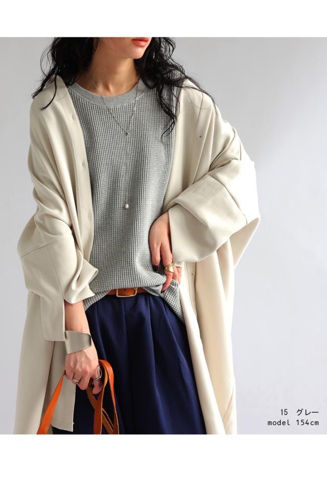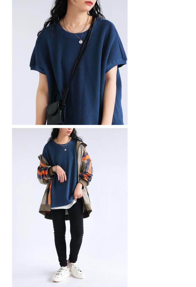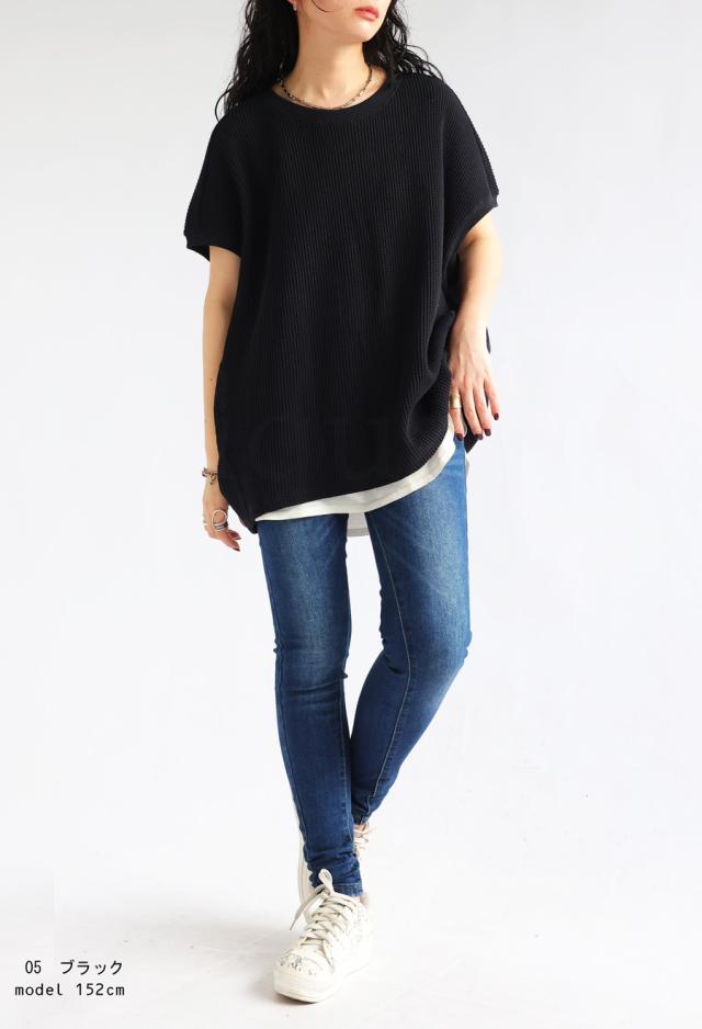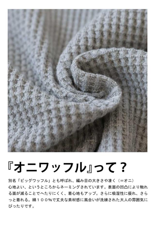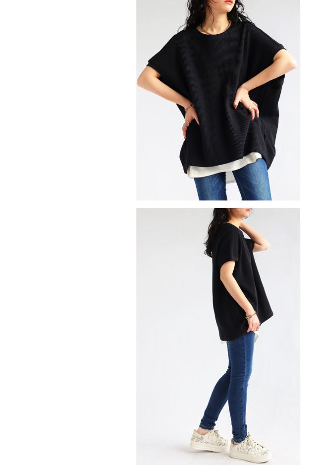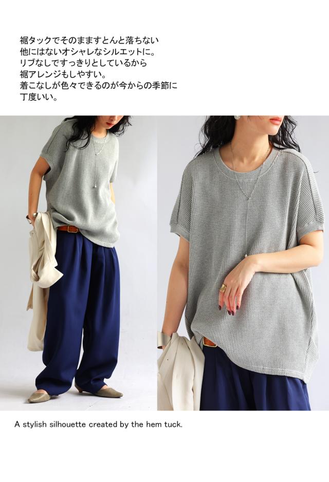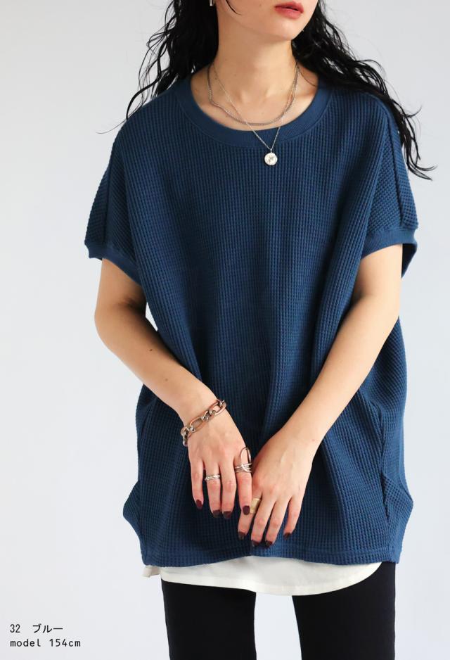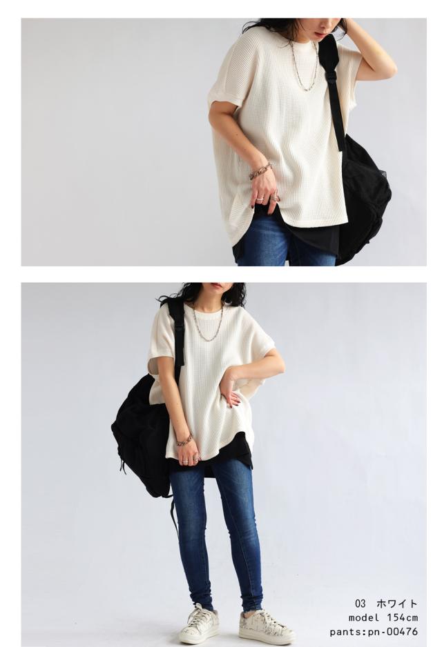 pn-00476 綿100 オニワッフル シンプル カジュアル クルーネック 丸首 重ね着 レイヤード 裾タック 綿 コットン カットソー プルオーバー ゆったり 前後差 大きめ 大きいサイズ