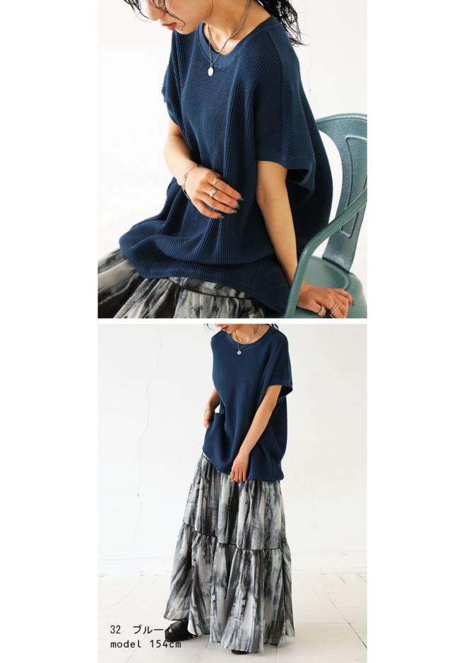 【検索ワード】鬼ワッフルトップス Tシャツ レディース トップス 半袖 無地 綿100 オニワッフル シンプル カジュアル クルーネック 丸首 重ね着 レイヤード 裾タック 綿 コットン カットソー プルオーバー ゆったり 前後差 大きめ 大きいサイズ antiqua アンティカ 大人 おしゃれ 10代 20代 30代 40代 50代 60代 春 夏 お洒落 かわいい かっこいい あんてぃか