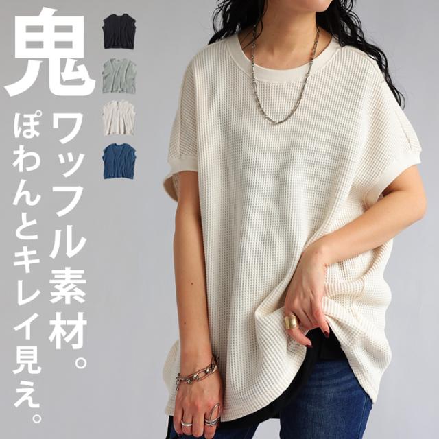 一枚で着られて楽ちん『ビッグワッフルカットソー』