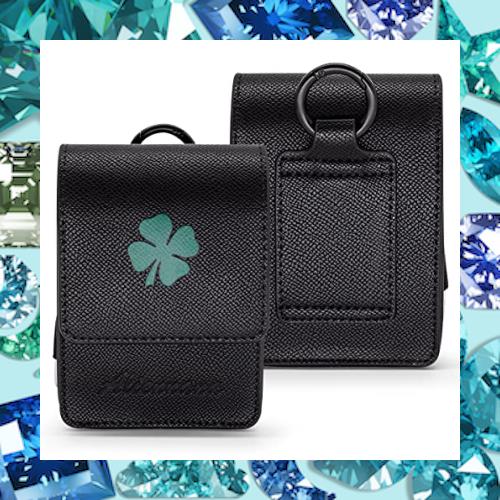 ゴルフレーザー距離計用収納ボックス キャリングケース 高級レザー製距離計測器ホルダーラッキークローバー仕様 計測器収納 マグネット開