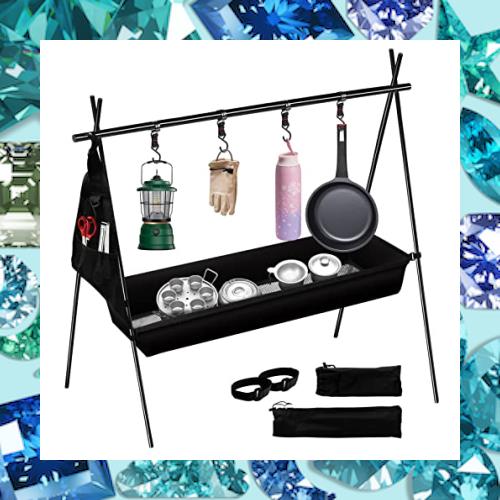 【適用場所広い】キャンプ、バーベキュー、登山、お釣り、テント泊などのアウトドア活動に様々な道具が散乱して整理が大変の時に、このハンギングラックを使うと道具を簡単に整えてとても便利です。アウトドア活動など幅広く利用可能だけでなく、ご家庭で洗濯物を干す用のハンガーラックとして使用もできます。